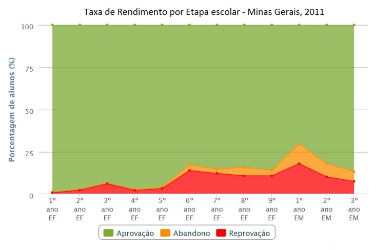 Observa-se que houve aumento das taxas de aprovação, para ambos os Estados e, consequentemente, a redução das demais taxas (reprovação e abandono). A análise das taxas de rendimento comprova que, se as taxas de aprovação na Bahia e em Minas Gerais estão aumentando, logo as de reprovação diminuindo, há proporcionalmente menos alunos repetentes e relativa estabilização do fluxo escolar. Entretanto, os ritmos e patamares dessa diminuição da repetência são diferentes, o que sugere persistência das desigualdades regionais em médio prazo. Assim, infere-se a existência de correlação entre a taxa de fecundidade, aprovação e matrículas iniciais e isso explica o porquê das matriculas estarem diminuindo nessas UF’s.