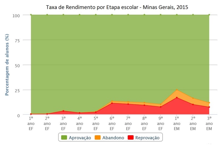 Figura 3. Taxas de rendimento escolar no EF (I e II) e EM, para Bahia e Minas Gerais