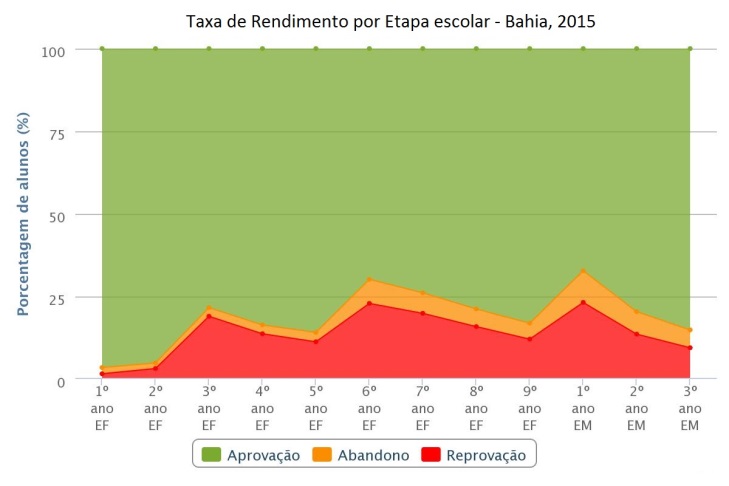 In Brazil, country of continental dimensions and large internal differentiations is increasingly the use of student performance in external evaluations of learning, in order to guide educational policies. Global indicators of quality of education as basic Education Development Index (Ideb) denotes that the Brazilian educational systems must be evaluated from the perspective of educational processes, management, learning and pupil’s school career. This study sought to highlight, through rates of income and age-Grade Distortion-in the five-year period 2011-2015 educational inequalities between Bahia and Minas Gerais States, historically and culturally related contiguous, but with educational indicators dissimilar. The trajectory of the research made it possible to note that, despite the approval rate of pupils in basic education be boosting school flow in Bahia and Minas Gerais, the reduction in the fertility rate in these States (UFs) has been favouring the reduction in the number of enrollments at all levels (elementary I, II and high school), especially in high school, worst segment of the basic education, mainly in Bahia State.